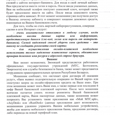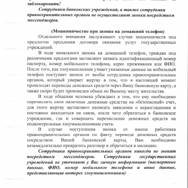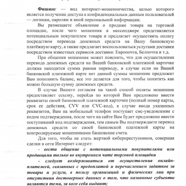 Информационные материалы об актуальных способах киберпреступлений и мошенничеств.