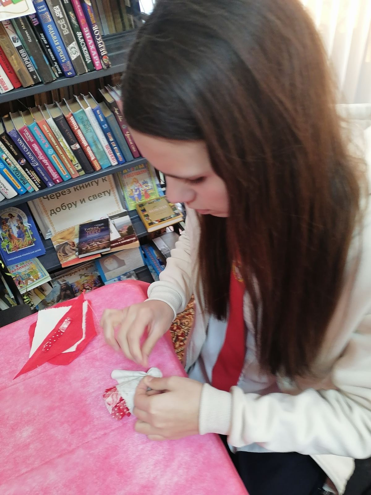 Ребята познакомились с историей, традицией и предназначением обереговых кукол славян и их разнообразием: Неразлучники, Кувадка, Крупеничка, Берегиня, Желанница. Много интересного узнали и о способах изготовления, методах обращения с такой куклой. Особенно понравился ребятам мастер-класс по изготовлению куклы Колокольчик. Куклу изготовляли как оберег для дома и она считалась куклой добрых вестей. В отличие от других славянских оберегов эта кукла могла издавать звук. Звук этот исходил от спрятанного внутри колокольчика. Звон предупреждал о том, что в дом кто-то вошел, очищал пространство и притягивал радость. Мероприятие прошло в уютной творческой атмосфере. Каждый участник мастер-класса получил массу положительных эмоций и впечатлений при изготовлении своей куклы, которую можно будет использовать в качестве оберега для дома.