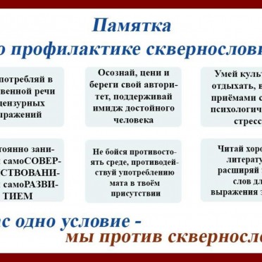 В библиотеках в течении недели действовала выставка «Мама, папа, я – вместе дружная семья», а также раздавались памятки о профилактики сквернословия.