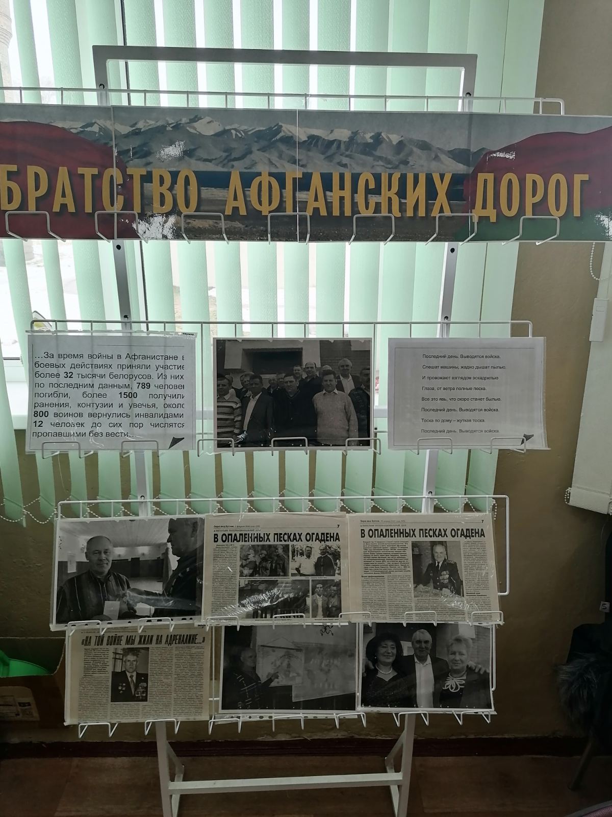 В Мотыкальском сельском совете самая большая по численности первичная организация воинов-интернационалистов, 9 из которых живет в Ковердяках. 15 февраля – повод, чтобы вспомнить о тех событиях и о наших земляках, которые выполняли свой воинский долг на Афганской войне. Эта выставка – дань уважения мужеству и стойкости солдат, прошедших суровые испытания Афганистана. Она призвана сохранить память о подвиге воинов-интернационалистов и передать её будущим поколениям.