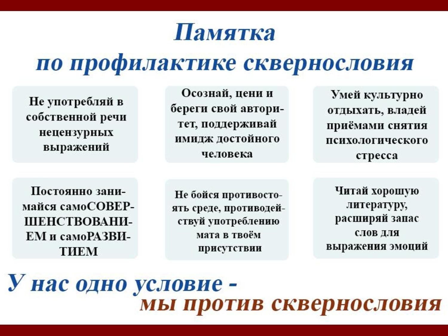 В библиотеках в течении недели действовала выставка «Мама, папа, я – вместе дружная семья», а также раздавались памятки о профилактики сквернословия.