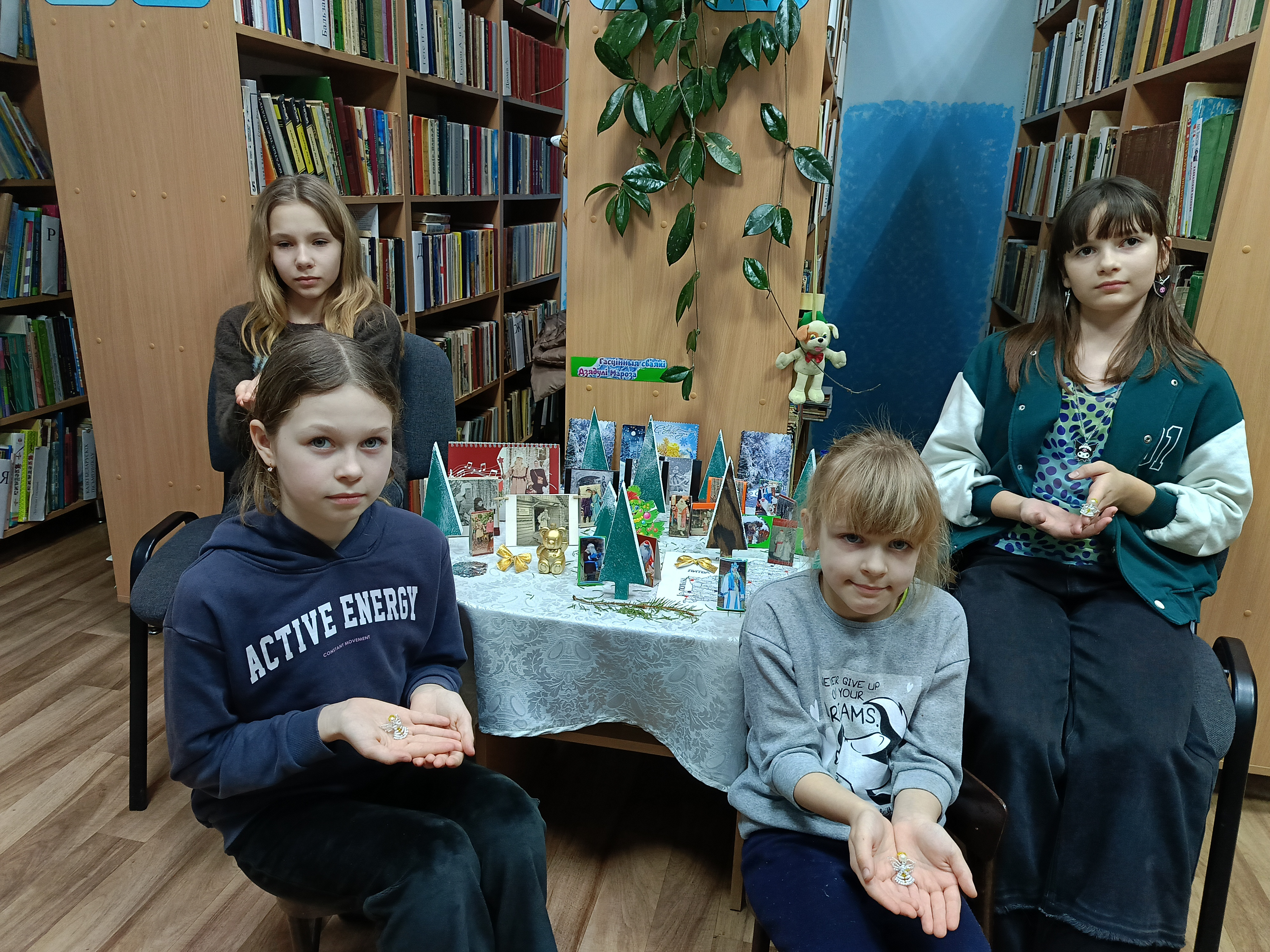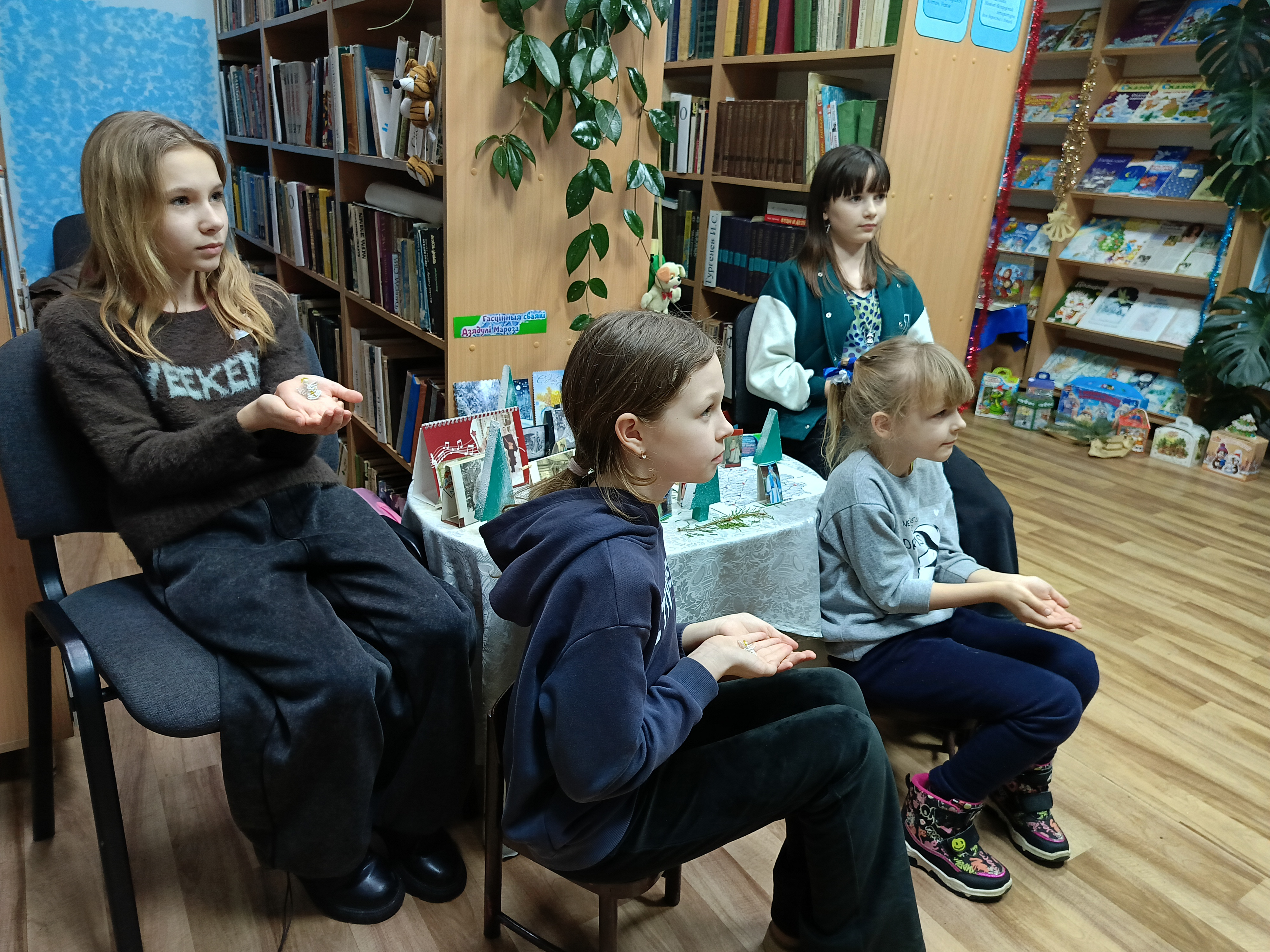 Ребята слушали рассказ о большой родне Дедушки Мороза, узнали кто такие Зюзя, Стужа, Метелица, Вьюга. Вспомнили, в каком году и где открыли первый и единственный в мире памятный знак Новому году. Также с интересом прослушали рассказ о партизанском Дедушке Морозе, где он обитает и как к нему попасть. Девочки сплели из бисера ангелочков, чтобы украсить свою елочку или подарить его своим родным и близким. В конце мероприятия всех ждал сладкий сюрприз.